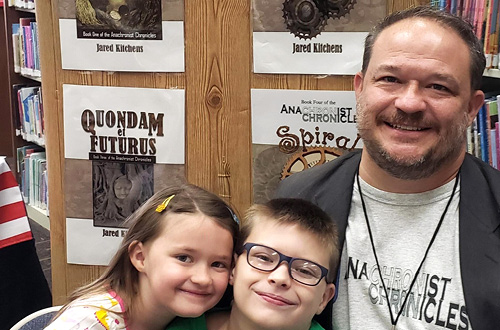 Jared Kitchens, a gifted-and-talented teacher at Crestview Elementary School in Frenship ISD, signed his books at the Lubbock Book Festival in November. Kitchens has written five books: Seasons of the Wither, The Temporal Trinity, Quondam et Futurus, Spiral Sisterhood, and States of Matter: Up and Atom.